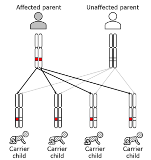 • 1 in 2 chance (or 50% chance) that the child will inherit 1 copy of the gene without a pathogenic variant and 1 copy of the gene with a pathogenic variant. They will be a carrier of the condition.