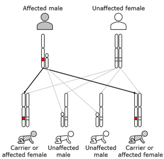 - No children with an X and Y chromosome (male) will inherit the pathogenic variant. They would not be at risk of having this condition.