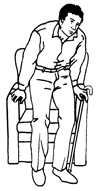 - Push down on the armrests or seat of the chair and lean slightly forward. Then push yourself up with your stronger leg.