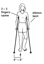 - Move your stronger leg ahead of the crutches, or to between the crutches for better balance.