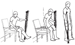 - Sit down slowly. Keep your crutches next to the chair.