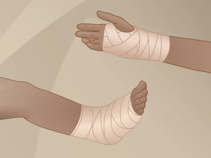 If the hand or arm is in a cast, splint, or brace, follow the instructions you got about how to loosen it.