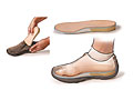 Shoe inserts may be made of plastic, rubber, or felt. Orthotics can reduce stress and pulling on the plantar fascia ligament.