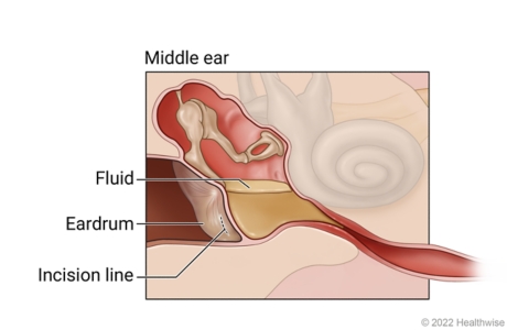 A small cut (incision) is made in the eardrum to allow fluid to drain.