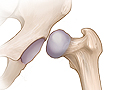 In a normal hip, the thigh bone (femur) fits snugly into a cup-shaped socket in the pelvis. It is held in place by muscles, tendons, and ligaments. But in DDH, the hip socket may be too shallow or the tissues around the joint may be too loose.
