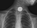 A foreign object is seen in the esophagus, breathing tubes, or lungs. |