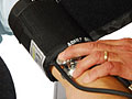 Your care provider uses a blood pressure monitor to screen for high blood pressure. A blood pressure cuff is wrapped around your bare upper arm. The cuff is then pumped up. The cuff is slowly deflated, and the monitor shows your blood pressure numbers.