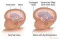 The brain and ventricles may be enlarged from the buildup of too much cerebrospinal fluid (CSF). This may be a sign of hydrocephalus. |
