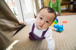 - Your child may not look directly at or respond to faces or large, colourful objects. A baby who can't find small objects when crawling on the floor may have cataracts.