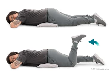 - Lie on your side, with your affected leg on top. You can use your hand or a pillow to support your head.