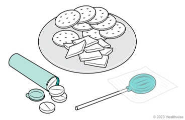 Give glucose tablets or quick-sugar food. Give some glucose tablets or quick-sugar food such as hard candy or juice when the person is alert and able to swallow. Also give them some long-acting source of carbohydrate such as crackers and cheese. Stay with the person until emergency help arrives.