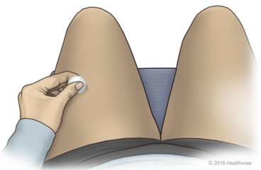 You can use your finger, a cotton ball, or a piece of gauze. To help avoid bruising, don't rub the area.
