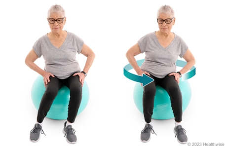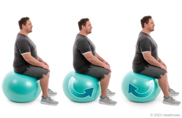 - Use this exercise to get used to moving on an exercise ball and to find your best sitting position.
