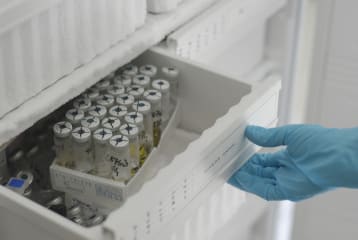 - Use the applicator stick to take a sample of the stool, and place it in the sterile container.