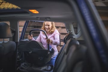 This is the safest place in the car for all children. Never place your baby's car seat in the front seat of any vehicle. Follow the maker's instructions for how to install the car seat.