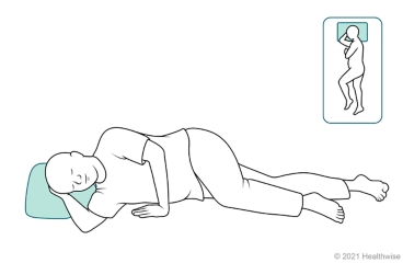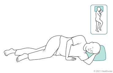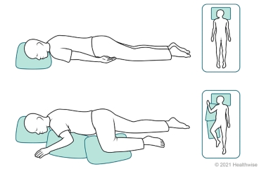 Proning and repositioning your body may help you feel better if you have mild trouble breathing. Changing positions can help your lungs work better. You rotate through positions in bed: lying on your belly ("proning"), on your right and left sides, and sitting up.