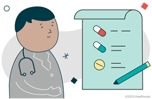 Make a list of all the medicines you take. Include natural health products and over-the-counter medicines like cold or allergy medicines and aspirin. Show the list to all your doctors at all your appointments.