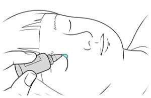 • Have your child lie down with their eyes closed. If you need to, hold your child gently but firmly.
