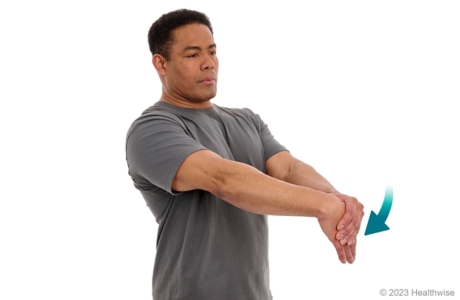2. With your other hand, gently bend your wrist farther until you feel a mild to moderate stretch in your forearm.