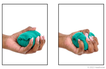 1. Hold a tennis ball or a rolled-up sock in your hand.