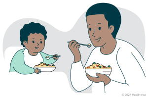 • Eat with your toddler. Offer them the same healthy foods you eat.
