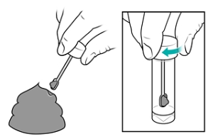 3. Use the stick to take a sample of the stool and place it in the provided bottle.