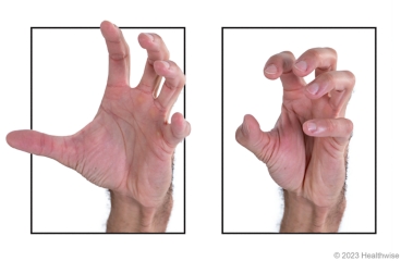 2. Slowly uncurl the joints of your hand with the affected finger where your fingers connect to your hand so that only the top two joints of your fingers are bent. Your fingers will look like a hook.