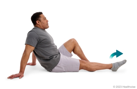 - Sit with your affected leg straight and resting on the floor. Your other leg should be bent, with that foot flat on the floor.