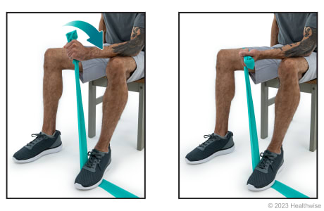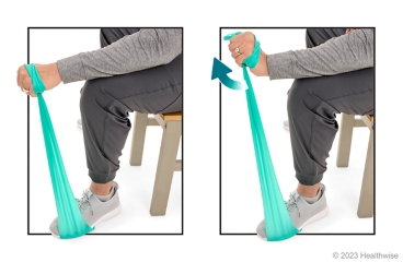 - Slowly bend your wrist outward and toward your knee for a count of 2. Then slowly move your wrist back to the starting position to a count of 5.