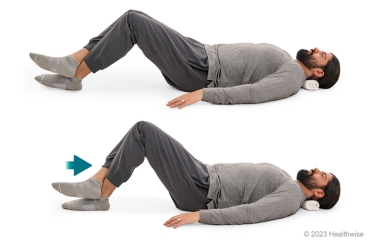 - Lie on your back with your affected leg straight. You can bend your other leg, if that feels more comfortable.