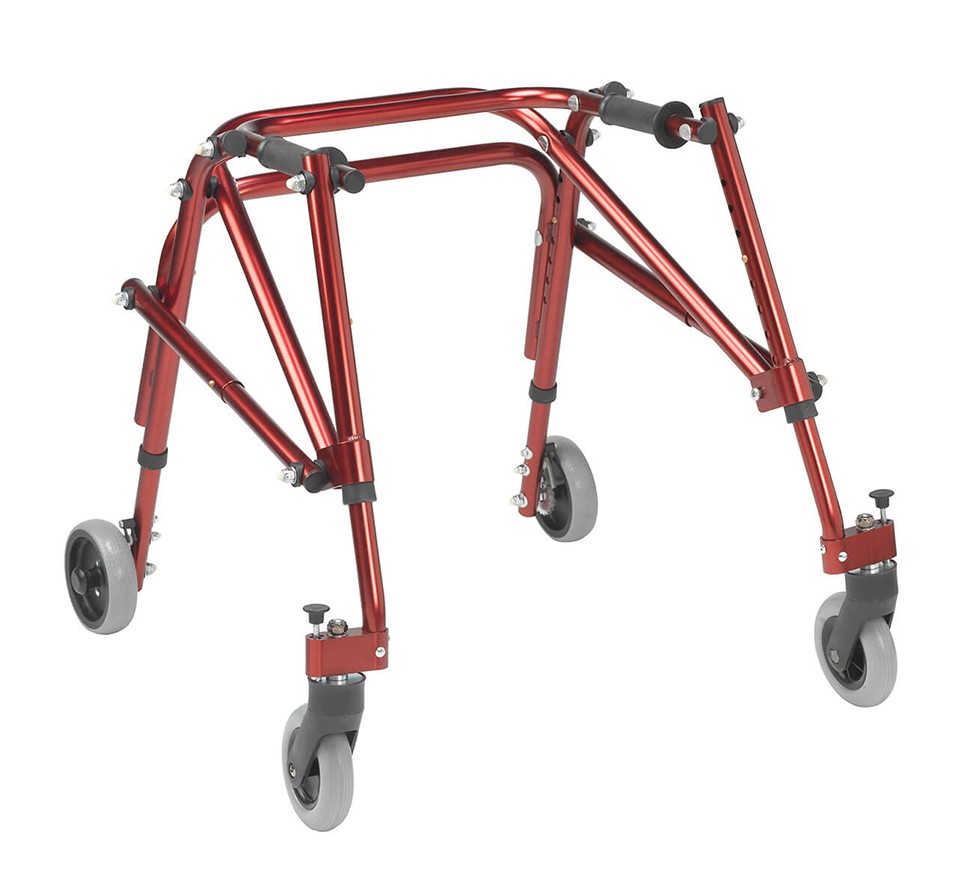 A posterior walker is placed behind your child for support. These walkers are pulled behind your child as they take steps forward.