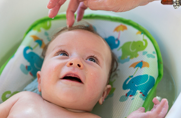 - Use a face cloth to clean around the face and ears. Do not use soap near the baby's eyes.