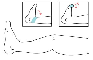 Straighten your leg and bend your foot (flex your ankle) slowly upward, toward your knee. Bend your toes up and down.