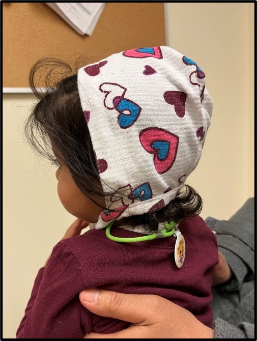 Stop using caps and headbands after your child stops trying to pull at their hearing technology or when your child is ready to start practicing putting on their own hearing aids.