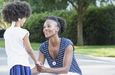 Kneel down and give them your eyes as well as your mind. This can help kids feel valued. And it models how to listen.