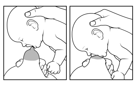 Touch your baby's lower lip with your nipple. Wait until your baby's mouth opens wide. Bring your baby quickly to your breast, and guide your breast into their mouth.
