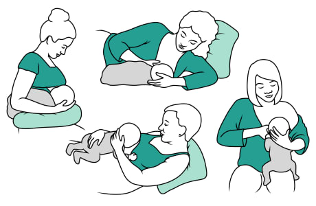 Find what works for you and your baby. Different holds include cradle, cross-cradle, football, Australian, laid back, and side-lying.