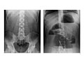Often two pictures are taken: one while you are lying down (supine) and the other one while you are standing (erect view). If you are not able to stand, the X-ray may be taken while you lie on your side with your arm over your head.