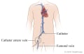 The place where the catheter will be inserted (in the groin) will be shaved and cleaned. Your doctor will numb the area with a local anesthetic. Then the doctor will put a needle into the blood vessel. A guide wire will be put through the needle into the blood vessel and the needle will be removed. The catheter will be placed over the guide wire and moved into the blood vessel. The catheter then will be guided through the blood vessels until the tip is in the area to be studied. Your doctor will use the fluoroscope to watch the movement of the catheter in the blood vessels.
