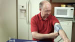 - Sit with your arm slightly bent and resting on a table so that your upper arm is at the same level as your heart.