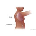 After the tissue sample is collected, your doctor will insert a drainage tube (chest tube) into the area and close the incision with stitches. One end of the tube will be in the space next to your lung. The other end will be sticking out of your chest and connected to a collection container. The chest tube helps re-expand your lung. The chest tubes will be removed when the drainage from your chest has stopped and no air is leaking from your chest incision, usually in a few days. Your stitches will be removed in 7 to 14 days.