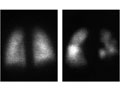 Lung scan Normal: | The radioactive tracer is evenly distributed throughout the lungs during ventilation and perfusion. |
