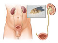 A kidney stone can be as small as a grain of sand or as large as a golf ball. Sometimes a stone may leave the kidney and move down a ureter into the bladder. From the bladder, the stone passes through the urethra and out of the body in urine. Passing a kidney stone through a ureter or the urethra may be painless or it may cause severe pain. A kidney stone may cause other symptoms, such as blood in the urine (hematuria), pain when urinating, or a severe need to urinate.