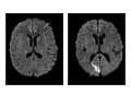 Areas of infection or inflammatory disease, such as encephalitis or meningitis, are present. |