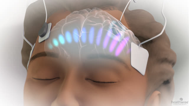 Before ECT, you will get anesthesia to make you sleepy, and you'll get medicines to relax your muscles. Then an electrical current is briefly sent to the brain through electrodes. They are placed on the temples or elsewhere on the head, depending on the condition being treated and the type of ECT. The electrical stimulation, which lasts up to 8 seconds, produces a short seizure. Because of anesthesia, the seizure activity related to ECT does not cause the body to convulse.